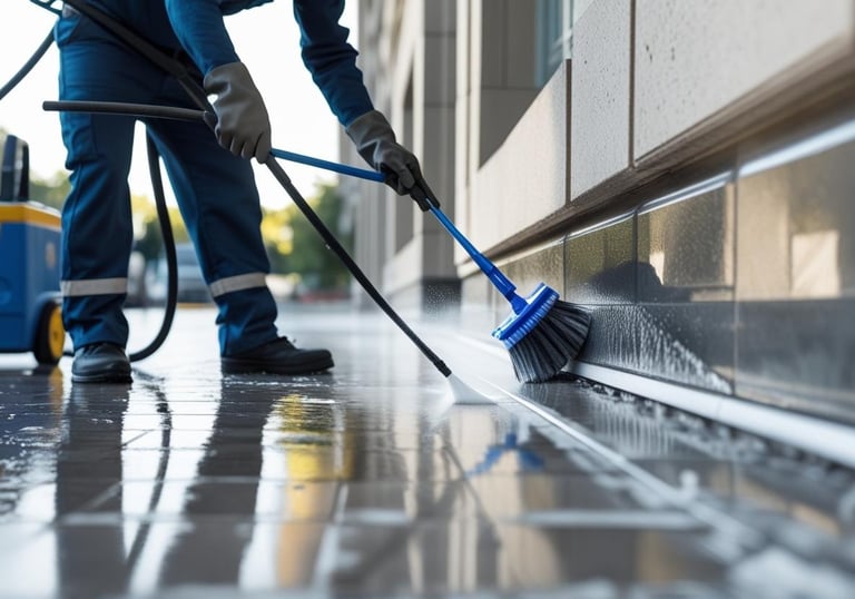 Notre équipe qualifiée est spécialisée dans le nettoyage de l'extérieur des bâtiments, assurant un environnement impeccable.